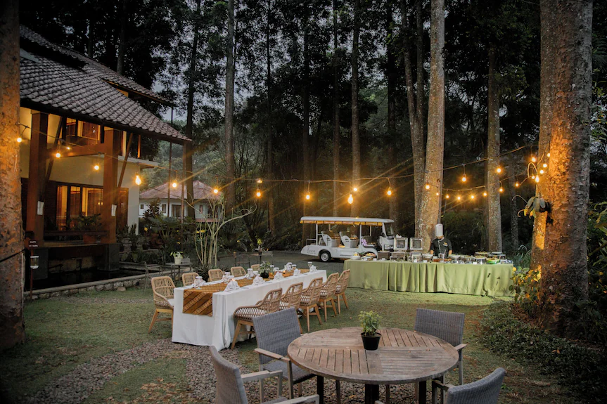 Selain itu, resort ini punya restoran outdoor yang sering dipakai buat dinner romantis atau chill bareng teman. Udara sejuk, musik pelan, dan makanan enak jadi kombinasi yang pas buat melepas stres bareng sahabat.