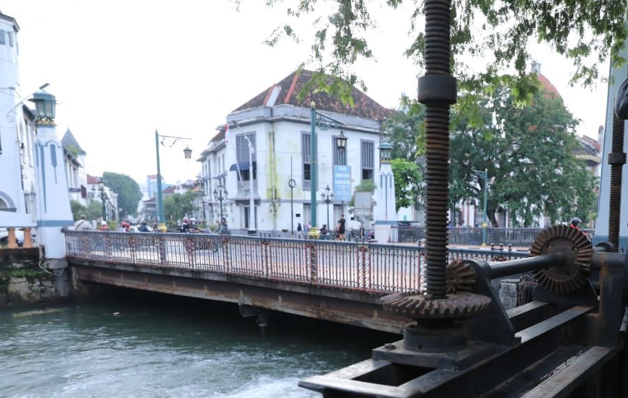Jembatan Mberok adalah spot yang sering digunakan fotografer untuk mengambil foto street ala Eropa. Jembatan putih dengan arsitektur khas ini menjadi salah satu sudut Kota Lama yang terlihat menawan dengan latar bangunan tua di sekitarnya.