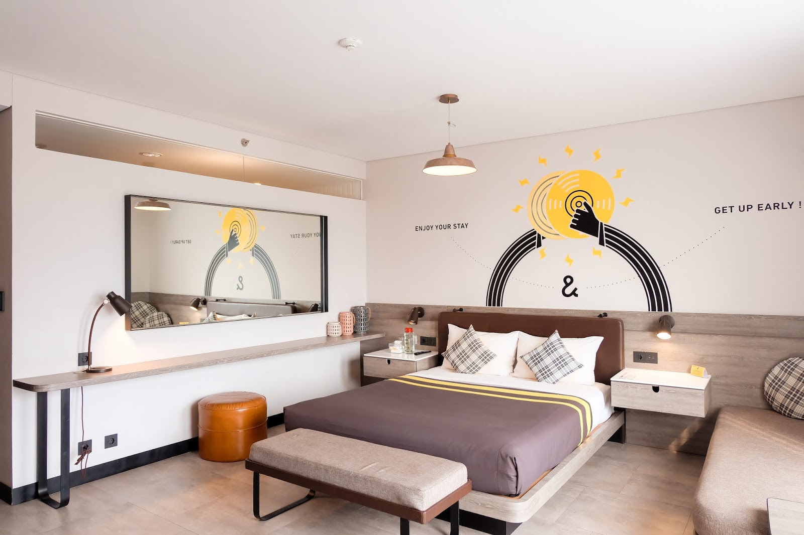 Hotel ini juga menyediakan kamar nyaman dengan desain yang aesthetic. Setiap ruangannya dilengkapi fasilitas lengkap untuk memastikan tamu bisa istirahat maksimal. Selain itu, area lobbynya dihiasi dekorasi unik yang sangat fotogenik. Menginap di sini membuat perjalananmu terasa praktis sekaligus menyenangkan.