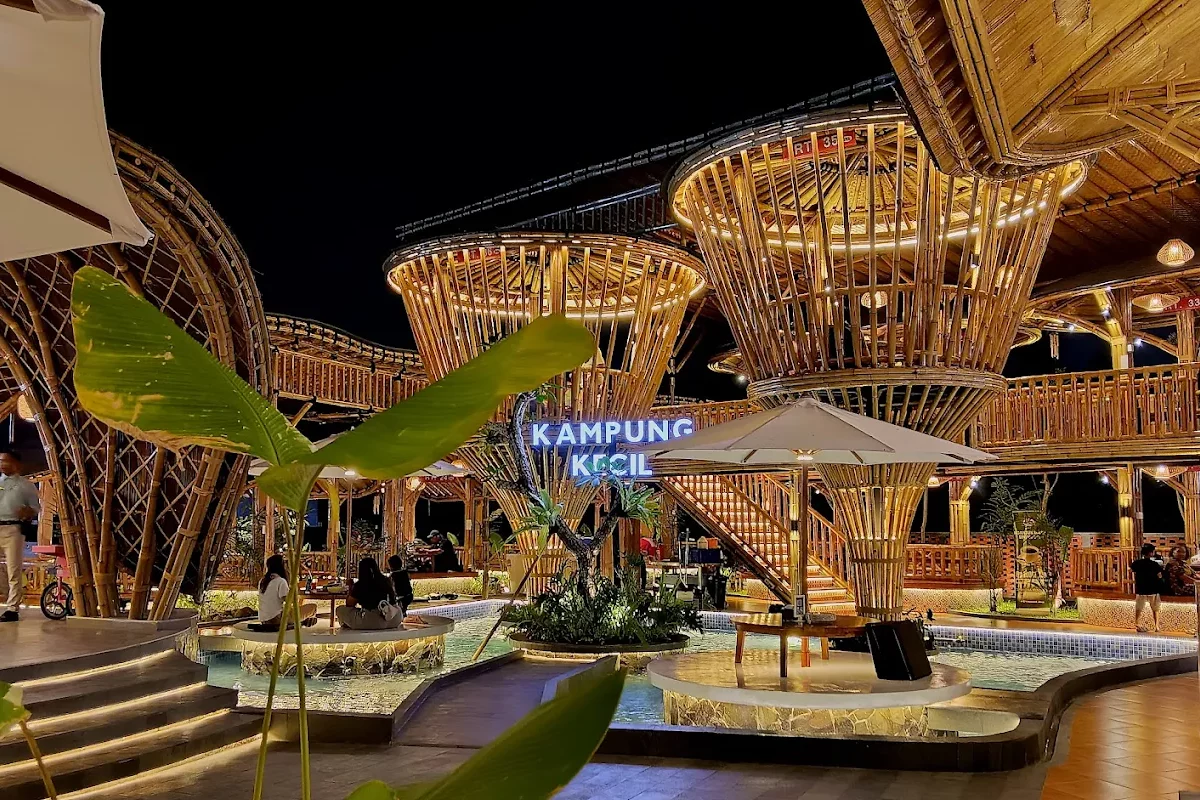 Kalau kamu cari tempat makan yang ramah anak, Kampung Kecil wajib masuk list. Restoran ini menghadirkan nuansa khas Sunda dengan konsep lesehan di gubuk bambu yang bikin suasana terasa lebih santai dan akrab. Anak-anak juga bakal betah karena ada playground dan kolam ikan yang bisa jadi hiburan tambahan.
