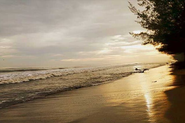 Pantai Nirwana menawarkan garis pantai yang landai dan pasir putih yang bersih. Kamu dapat melihat kapal-kapal yang bersandar di kejauhan, memberikan sentuhan pemandangan yang unik. Suasana di pantai ini cenderung lebih tenang dibandingkan pantai lain di sekitar Padang.